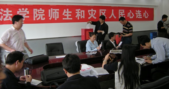 截至目前,法学院教职工共为四川地震灾区捐款9700元。5月15日晚,研究生和本科生将进行捐款。