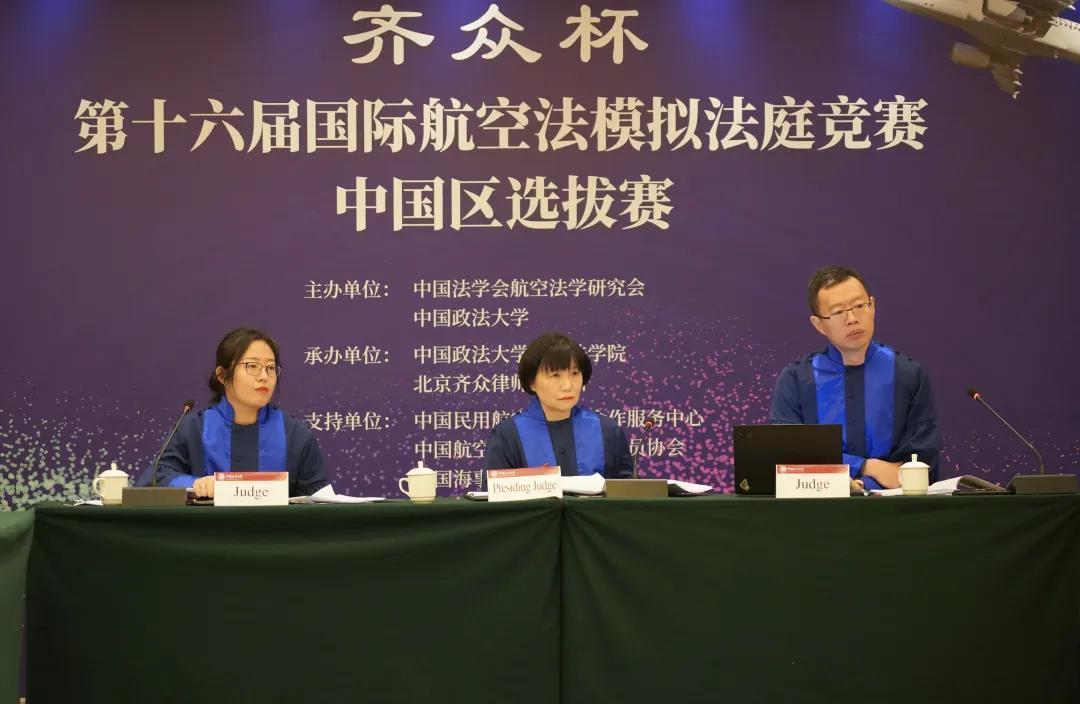 本届赛事的中国区选拔赛由中国法学会航空法学研究会、中国政法大学主办,中国政法大学国际法学院、北京齐众律师事务所承办,并得到了中国航空器拥有者及驾驶员协会、中国民用航空局国际合作服务中心和中国海事仲裁委员会的支持,由中国AOPA会员对赛事进行直播。法官由柯莉娟律师事务所/McGill大学客座教授柯莉娟、竞天公诚律师事务所合伙人董纯钢律师、中国民用航空局国际合作服务中心雷傲女士担任。