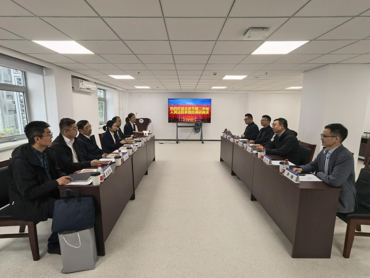 泮伟江对靳学军一行的到来表示热烈欢迎。他聚焦法学院发展历程、学科建设、师资建设、人才培养等方面,对学院基本情况与发展目标做出详细介绍。他表示,期待日后与北京市第二中级人民法院在人才培养、交流实践等方面通力合作,推进学科和学术平台建设取得更大成果。