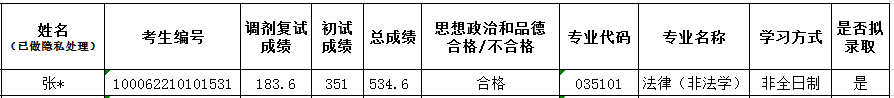 我院于2022年4月9日在院官网上公示的《北航法学院2022年硕士研究生调剂结果公示》(网址:http://fxy.dienj.com/info/1019/7161.htm)中,经核查,录入错误,错将考生张*(考生编号100062210101531)有关信息录入为考生王*影(考生编号100062210505778)有关信息,特此更正如下: