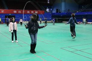趣味项目中,无论是老师还是学生都兴致盎然,争分夺秒地练习起了比赛项目,认真地进行热身等赛前准备。三人四足跑比赛中,师生互帮互助,共同冲向终点,玩得不亦乐乎。双人背夹气球、跳绳接力赛和合力踢毽子项目则异常激烈,参赛队员们个个精神抖擞,队友们随着比赛的进行不断地给予队友加油鼓励,场面十分热闹。