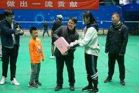 羽毛球比赛结束后,学生会负责人依次为季军,亚军和冠军颁发奖品,同学们也用热烈的掌声送去了对他们的祝福。接着迎来了最激动人心的抽奖环节,同学们将自己号码纸放入抽奖箱中,由王琪全书记进行抽奖,最终一位女同学在同学们的掌声中领取了属于自己的大奖。