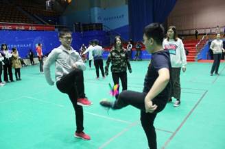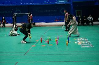 羽毛球比赛中,老师和同学通过抽签匹配队友和对手,经过了严酷的淘汰赛,学生们接连遗憾淘汰。最终决赛的场地上,我们迎来了四位老师之间的终极对决,在激烈的比赛过程中,老师们的次次扣杀都引起了场馆内同学们的热烈掌声。