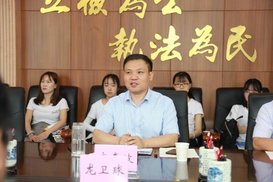 金明区第二检察部王主任回忆了和前几届学长学姐们的沟通,建议实习时间能够延长,使得同学们能深入到业务中去。此外,王主任表示了对同学们踏实态度的肯定,她认为同学们积极性高,新知识和新思想为检察系统带来了新的血液,并勉励大家再接再厉。