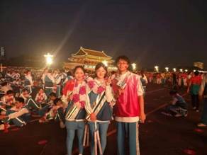 虽然表演只有短短的90分钟,镜头加起来只有短短的几分钟,但是凝聚了我们2个月努力的汗水。从沙河文体馆单排到海淀区合排再到全市合排再到长安街的三次演练最后十一的呈现,经历了无数次删减改动,坐过马路地铁长安街金水桥,睡过天安门的大街,远处眺望城楼上的人们……每一点一滴都将会是难忘的回忆。