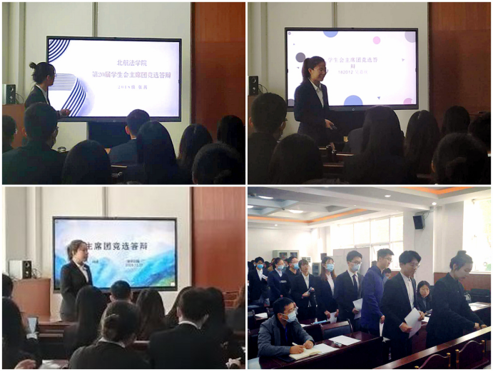 20201021日星期三下午14:30,北航法学院第二次学生代表大会暨第二十届学生会主席团换届选举在学院路八号楼101室成功举行。本次大会由法学院第十九届学生会主席徐虹宇主持,法学院党委副书记张渊、分团委书记邹沛东、2017级辅导员母安琪、2018级辅导员李白、2019级辅导员唐浩隆出席会议。