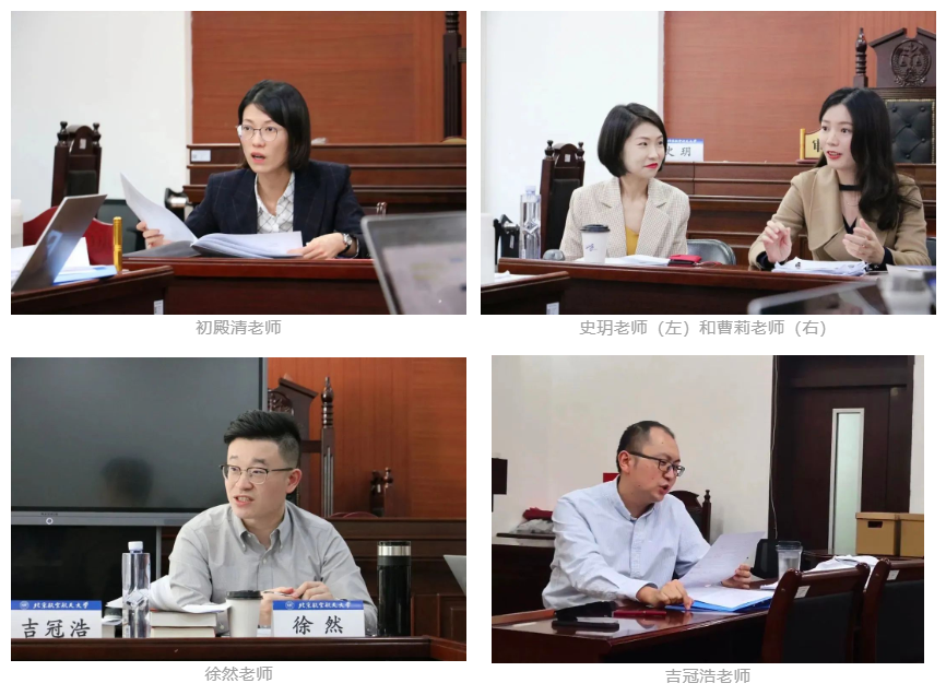 优异的成绩,离不开队员们以星月为伴的奋斗,离不开组织有序的北航模法备赛科学模式与备战经验的积累与传承,更离不开指导老师、学者以及实务人员的倾囊相授。在备赛的过程中,吉冠浩老师始终与同学们共奋战,陪伴队员们讨论、推进、改善思路,指引备赛的方向,曹莉老师为队员们提供丰富宝贵的实务经验,徐然老师以丰富的理论知识与队员们反复推敲思路。惟有在诸位老师们经验和理论滋养之下,模法队员们才能披荆斩棘、一往无前,在此特别感谢备赛期间为队员提供指导的所有老师!