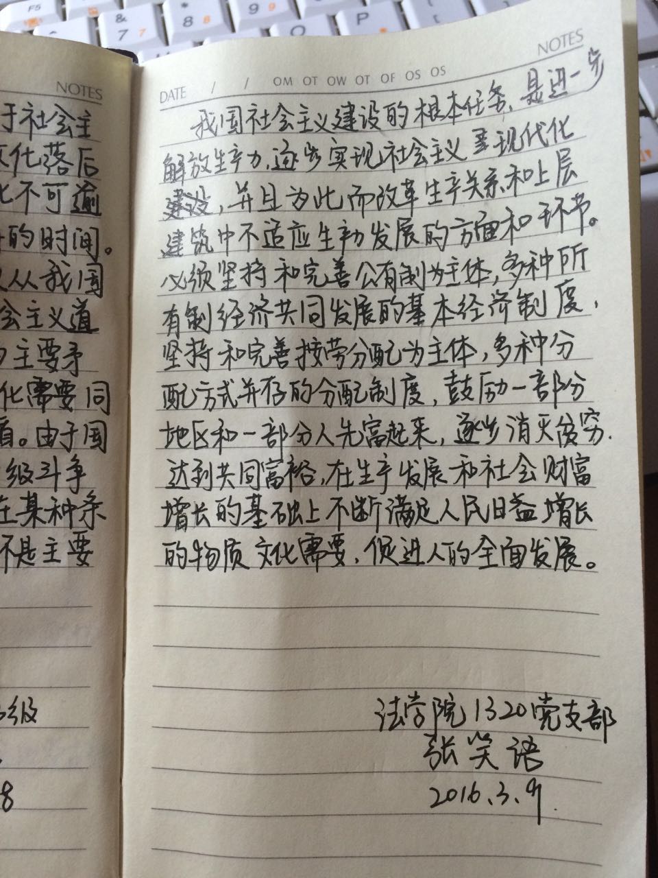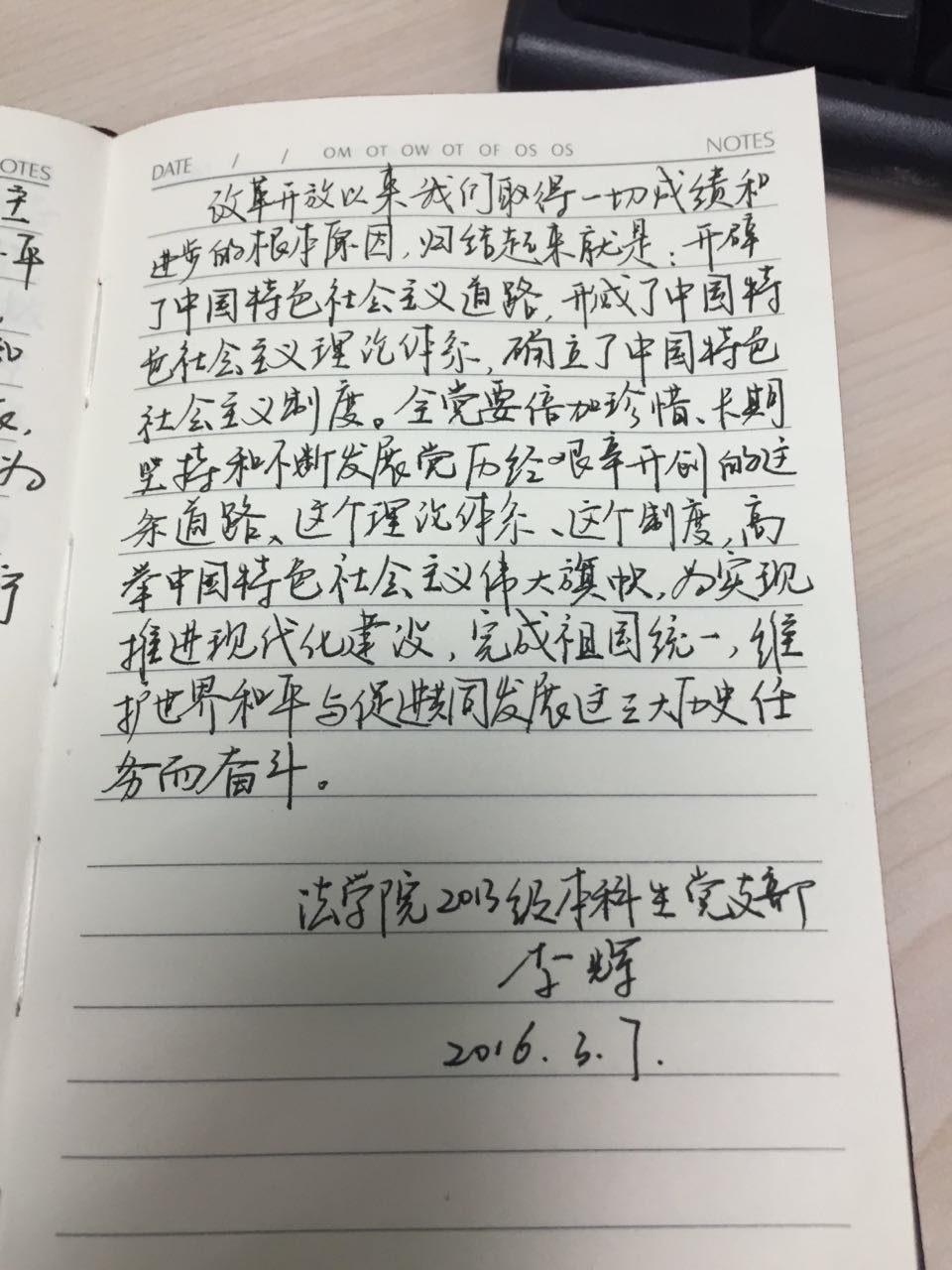 2016年,党中央决定在全体党员中,开展“学党章党规、学系列讲话,做合格党员”(以下简称“两学一做”)学习教育活动。2016年3月2日开始,北京欧美大片ppt免费大全法学院2013级本科生党支部(以下简称1320党支部)在支部书记李辉的带领下,深刻领会“两学一做”学习教育精神,深入学习党章包含的思想精髓和时代要求,全面启动“手抄党章100天”活动。