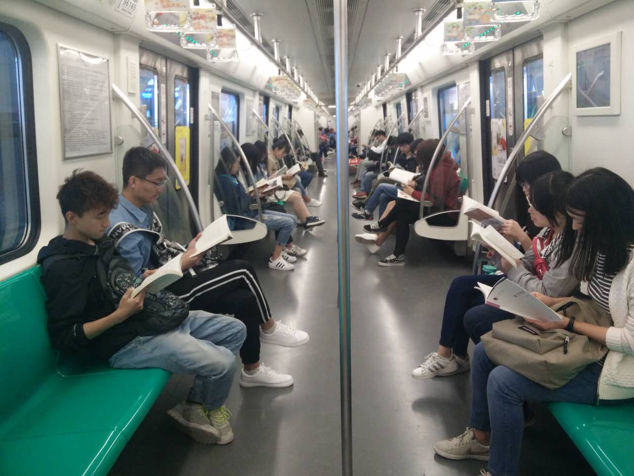 4月23日上午,由北航法学院和快闪社组成的15名同学,自昌平线沙河站出发,开始了地铁读书快闪之旅。同学们自地铁沙河站登车,经西二旗站抵达知春路站,行程五十分钟,同学人人手捧书籍,享受着周末的纸墨清香。车厢内人潮涌动,丝毫不影响同学们读书的安静。同学们以其直白的行动向所有同乘之人宣示了一种热爱阅读的态度,以倡导大家都珍惜时光,勤奋阅读。到达知春路站后,同学们集中前往如心楼101室交流了本次活动心得,并就个人阅读体会与其他同学做了分享。同时为了鼓励大家继续坚持阅读的习惯,法学院学生会还赠送了活动参与者一人一本图书。