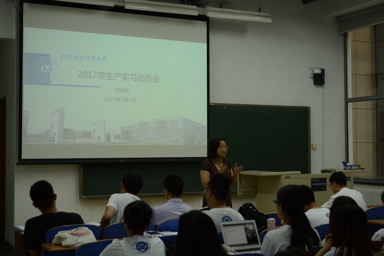7月7日下午两点半,北航法学院2017年暑期见习行前动员大会在新主楼F122教室召开。法学院副院长黄卉、分团委书记庞瑜、实习基地带队教师康子兴、乔博娟、刘颖、吉冠浩出席大会,法学院2015级全体本科生参加了动员会。会议由2015级本科生辅导员张健睿主持。