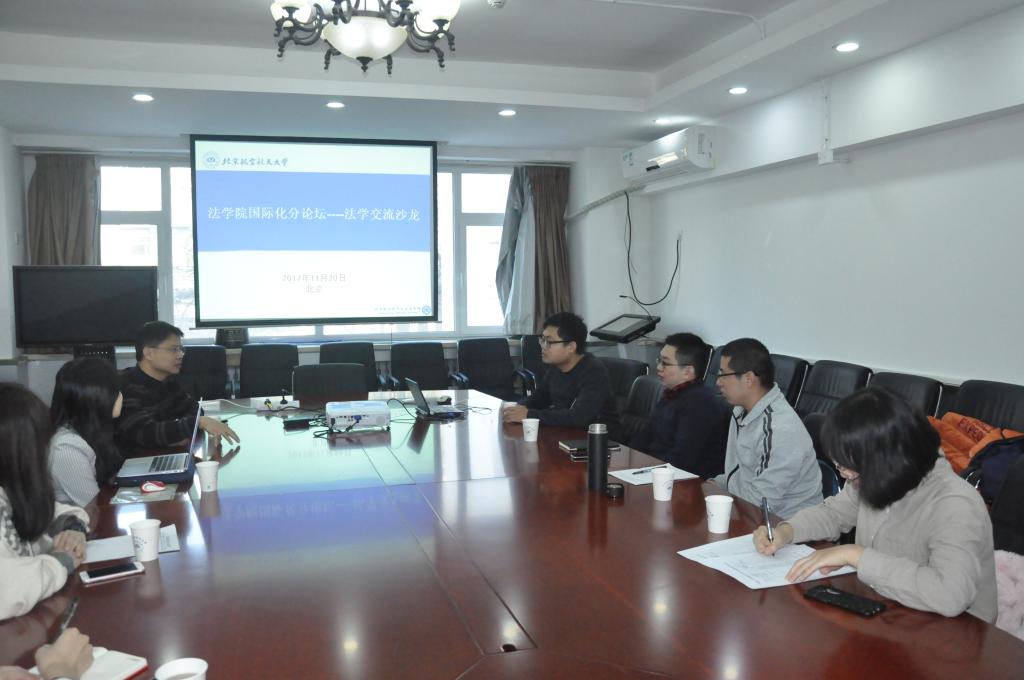 2017年11月20日,法学院国际化分论坛——法学交流沙龙在北航法学院如心楼206成功举办。此次沙龙是继“当前民法典编纂推进分则问题研究——第十四届研究生学术论坛国际化分论坛”后两岸学生面对面进行的一次更为深入地交流。来自台湾政治大学法学院的博士研究生詹聪哲和硕士研究生严绍瑜与我院部分博士和硕士研究生进行了交流。