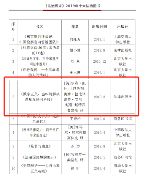 此外,《所有权的终结》一书同时获得“北京图书大厦·高级管理者书单”“政邦推荐·2022年度书单”等奖项。同时,这也是赵精武副教授继《数字正义:当纠纷解决遇上互联网科技》后,第二次获评《法治周末》十大法治图书。